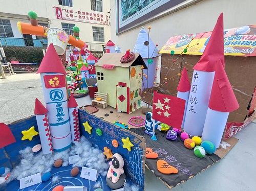成果展示区更是热闹非凡。低年级学生专注裁剪、粘贴出“梦幻小屋”,在掌握基础手工技能的同时,从实践中理解隔音、保温、隔热的科学原理;中高年级学生自由组合,协作拼装“红色信号塔”,调试电路灯光;打磨“革命运输小车”探索机械原理;创作“航模飞行”,怀揣科技报国雄心壮志。同学们在“设计—制作—调试”中锤炼协作能力,让抽象科学原理变得直观趣味,在科技节大舞台上尽情演绎,展现各自的特长。