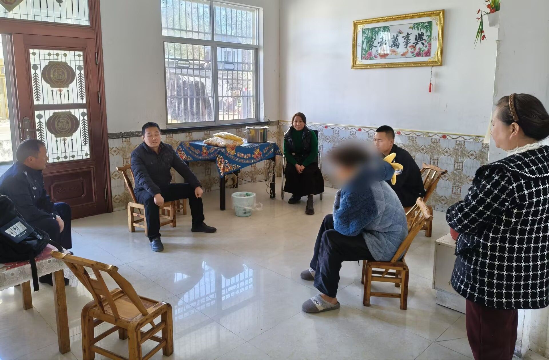 走进小阳同学家的客厅,墙上“家和万事兴”的挂画格外醒目,家访小组围坐在一起,没有说教式的批评,而是先从“孩子最近的情绪变化”聊起。班主任细细讲起小阳同学在校的点滴:“他其实很聪明,这学期变化很大,就是最近总闷着不说话。”民警则从安全角度,轻声提醒未成年人外出闲逛的风险,“晚上别去人少的地方,有困难随时联系我们”;村干部也接过话头,“家里要是有啥难处,村里能帮的一定帮”。