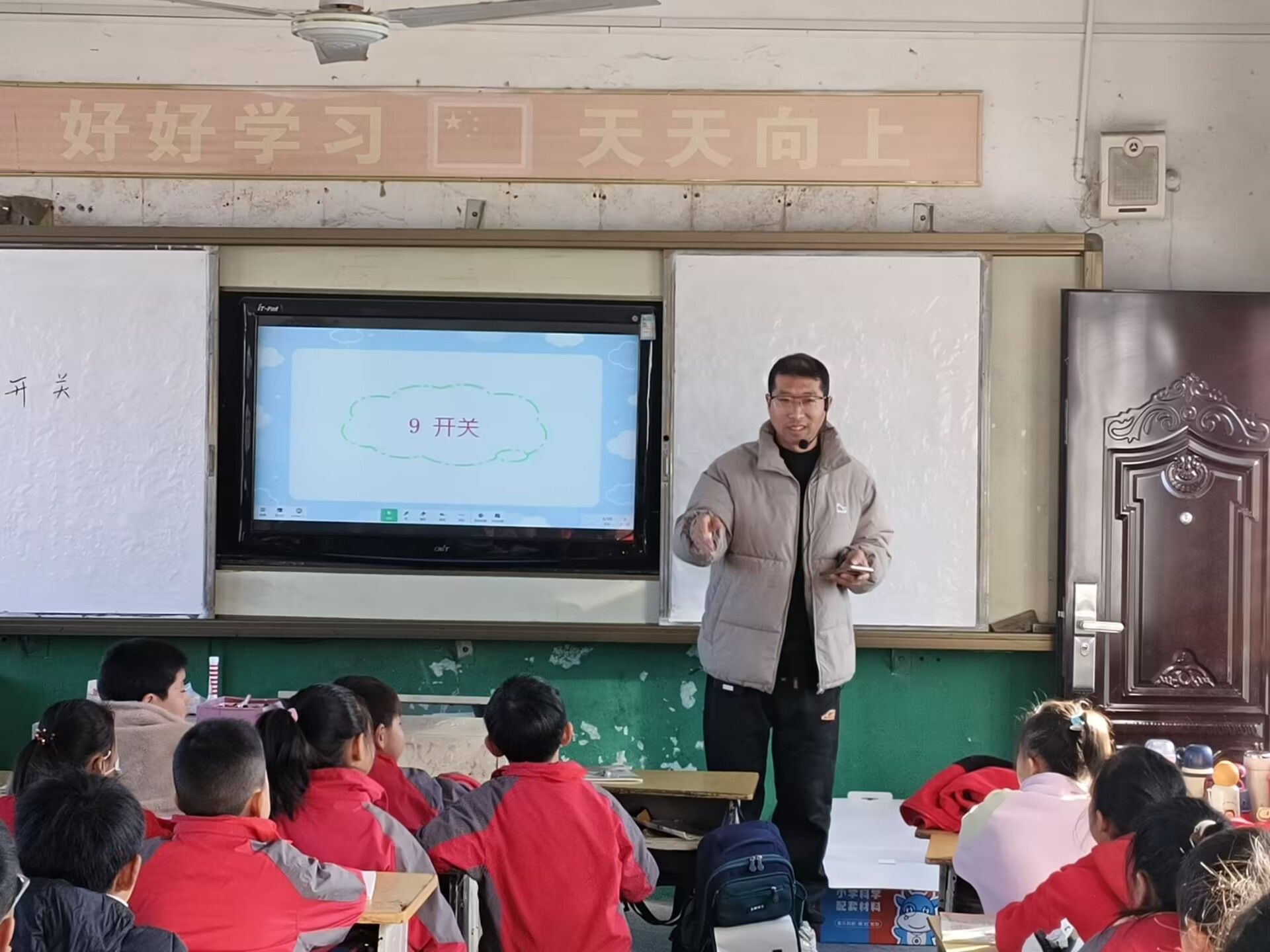 科学课堂上,柳孝俊老师为301班学生带来《开关》一课。他以问题驱动:“如何让小灯泡亮起来?”引导学生分组设计开关模型。学生们手持导线、电池,专注调试,在“做中学”中理解电路原理。柳老师穿梭于小组间,适时点拨:“开关的作用是控制电路通断,你们的‘开关’是否实现了这个功能?”课堂末尾,各组展示作品,分享设计思路,科学思维在动手实践中悄然生长。