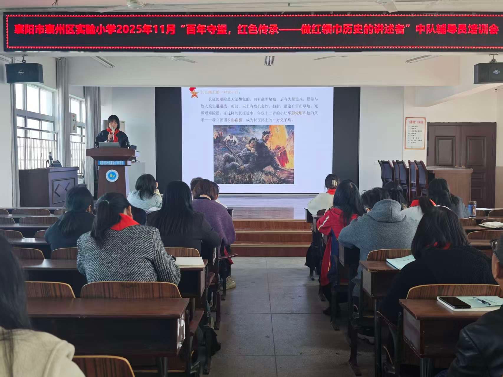 2025年11月28日,襄阳市襄州区实验小学校园内洋溢着一种庄重而温暖的气息。“百年守望,红色传承——做红领巾历史的讲述者”中队辅导员专题培训会在此成功召开。此次培训旨在深入挖掘红领巾背后波澜壮阔的历史,提升辅导员们的政治素养和宣讲能力,引导队员们更好地理解和传承红色基因。