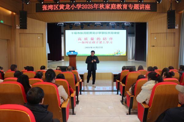 为深入贯彻落实立德树人根本任务,进一步凝聚家校育人合力,构建 “学校主导、家庭参与、协同育人” 的良好生态,共筑孩子健康成长的坚实根基,11 月 27 日下午,张湾区黄龙小学精心策划并组织了以 “如何让孩子爱上学习” 为主题的家校共育专题讲座。一年级、五年级、六年级共 260 余名家长齐聚学校报告厅,怀揣对孩子教育的深切关注与美好期许,共赴一场启迪智慧、凝聚共识的教育之约。