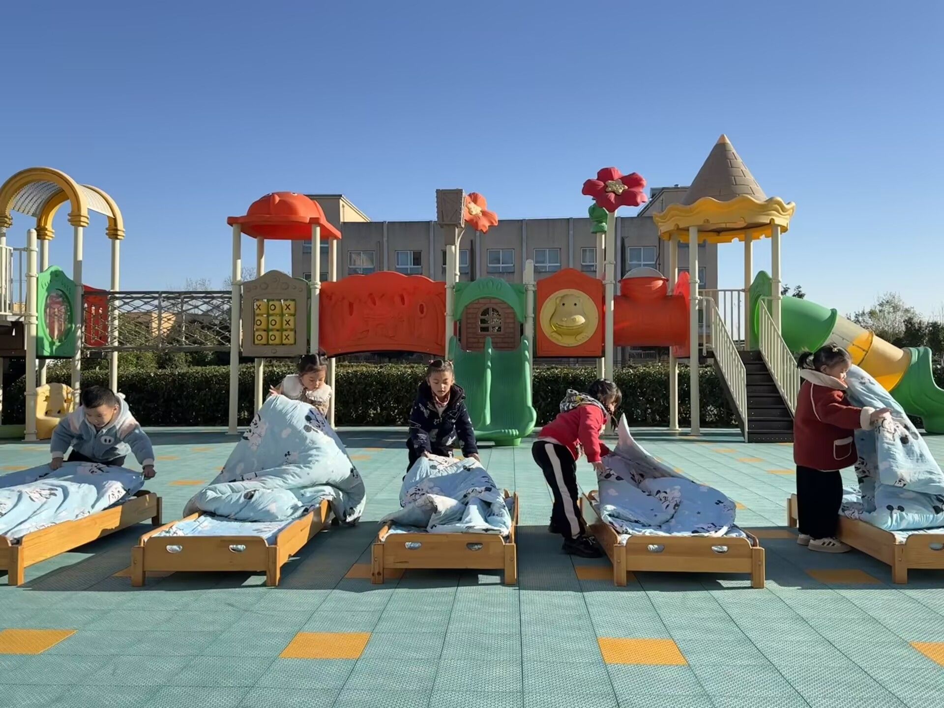 本次比赛按幼儿年龄段分组,设置了贴合各年龄段发展特点的比赛项目,小班组设置了叠毛巾、拉书包拉链等比赛内容,中班组设置了整理桌面、分类收纳玩具等比赛内容,大班组设置了穿脱鞋袜、叠被子、整理书包等比赛内容,每个项目都聚焦幼儿生活技能的核心要点,既考验动手能力,也锻炼了精细动作的发展能力。