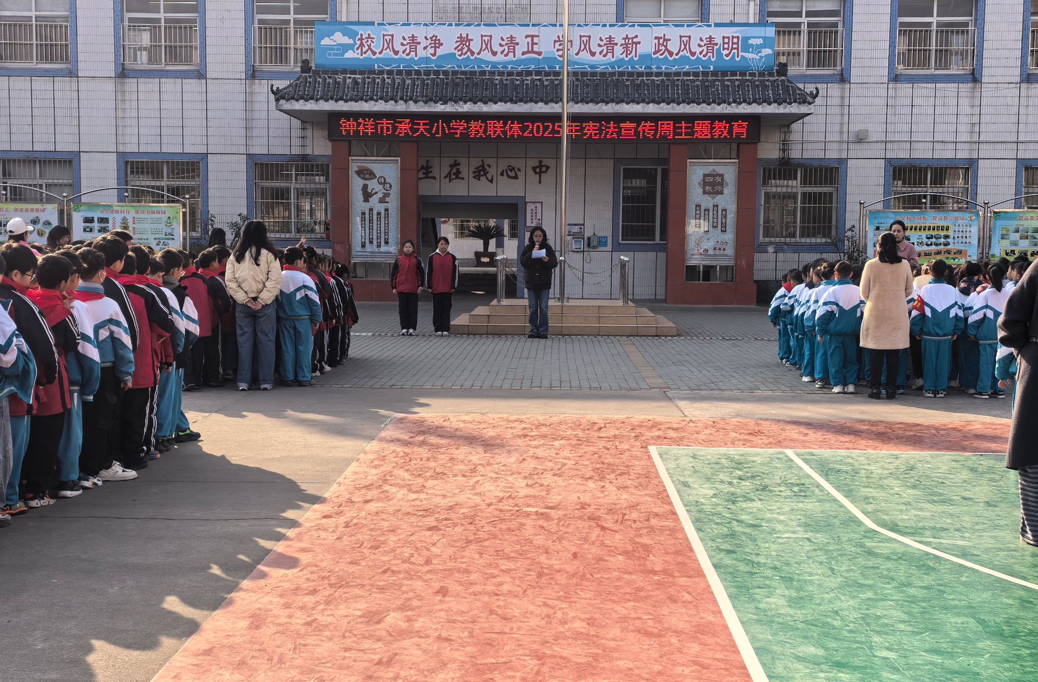 12月1日,钟祥市承天小学教联体以全国“宪法宣传周”为契机,举行宪法宣传周主题教育启动仪式,全面增强师生法治观念,为校园注入浓厚的法治教育氛围。