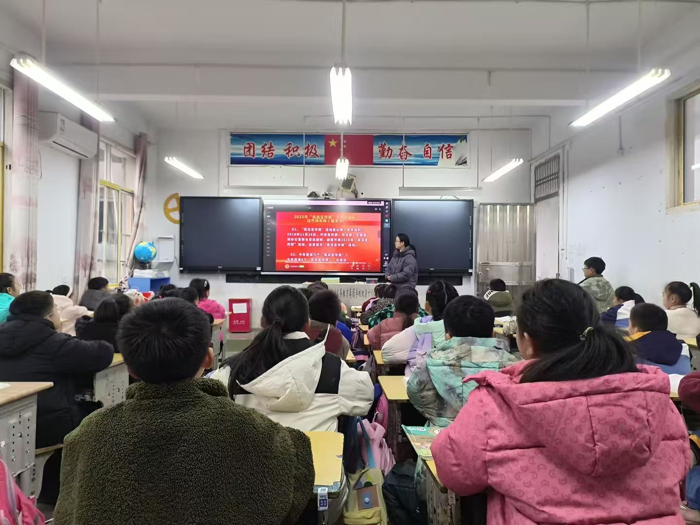 活动中,全校分班级利用多媒体设备组织学生观看生动有趣的宪法宣传动画视频,将抽象的法条转化为易于理解的故事与画面;在“宪法与我”主题教育班会课上,各位班主任结合小学生的年龄特点和认知水平,用贴近生活的实例,深入浅出地讲解宪法与日常学习生活的密切联系,引导同学们认识到宪法是国家的根本大法,与每个人息息相关。