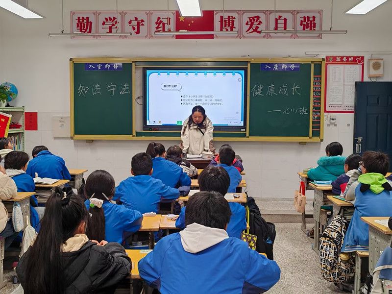 12月1日晚上,各班在政教处的安排部署下召开了“知法守法,健康成长”为主题的班会。班会内容丰富多样,有的班级通过情景剧表演,模拟校园欺凌、网络诈骗等真实案例,让学生在角色体验中增强法律意识;有的班级播放法治教育短视频,引导学生讨论“什么是违法”“如何依法维权”等话题;还有的班级邀请法治辅导员在线讲解青少年常见法律问题,现场答疑解惑,气氛热烈而有序。
