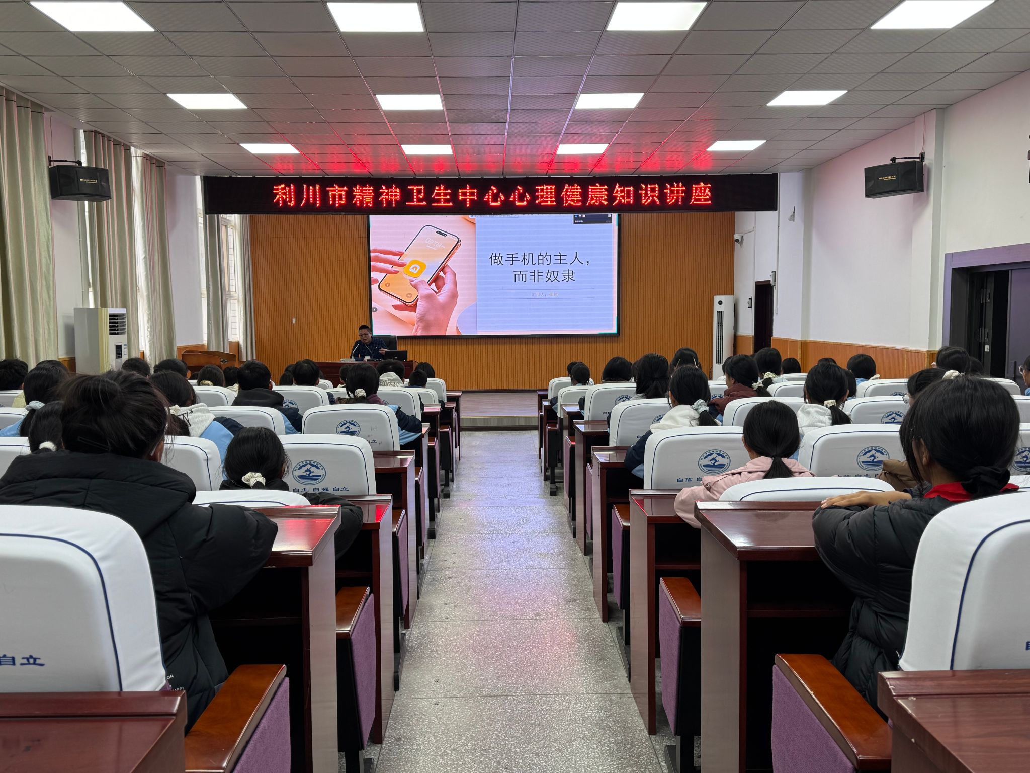 为引导学生正确认识和使用手机,提升心理健康素养,12月2日,利川市精神卫生中心心身医学科主任、国家二级心理咨询师张锐应邀走进忠路初中,为师生带来了一场题为“做手机的主人,而非奴隶”的专题心理讲座。