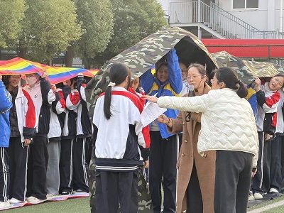 主体活动“无敌风火轮”则真正考验团队的规划与执行力。各小组领取塑料布和胶带后,迅速投入到“风火轮”的制作中。有的负责铺平,有的负责粘贴,有的指挥协调……每一个环节都需要沟通与配合。制作完成后,全体组员站进圆环,齐心协力向前移动。活动后,同学们轮流发言,表达对同伴的欣赏与感谢。“谢谢你在风火轮里一直提醒大家节奏!”“我们是最棒组合!”……一句句真诚的话语,伴随着冬日暖阳照进每个人心里,团队的纽带更加牢固。