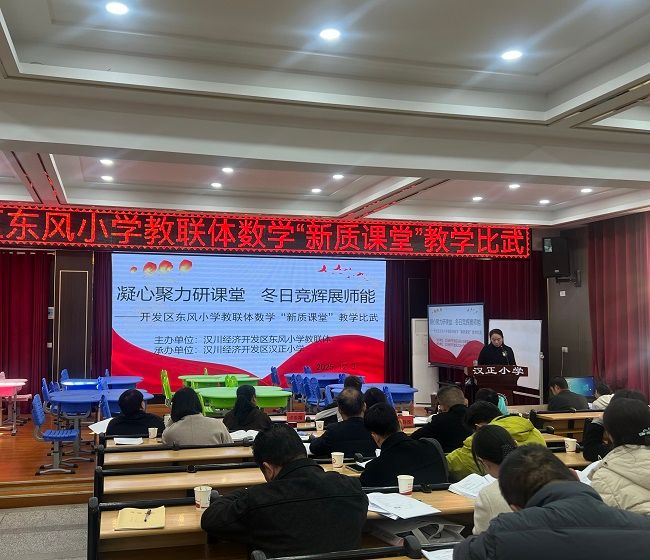 12月3日,东风小学教联体数学“新质课堂”教学比武活动在汉正小学多功能会议室精彩启幕。来自汉新小学、汉正小学等6所成员校的教师同台竞技,以创新课堂实践诠释“素养导向、生本为先”的新质教育理念,近50名教师参与观摩研讨。