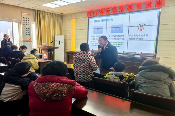 在随后的互动判断环节,学生们踊跃举手,准确分辨出故意抢走文具、往水杯里放杂物等行为属于欺凌,而不小心绊倒同学则不是,但需要道歉和帮助。清晰的讲解与互动,帮助孩子们初步建立起识别欺凌的“火眼金睛”。