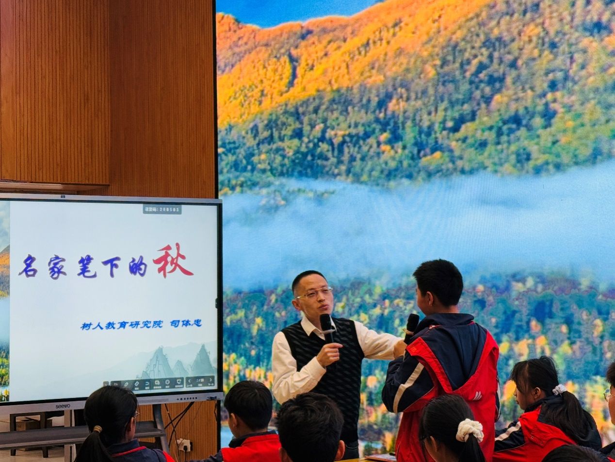 开幕式后,教学展示活动随即启动。来自重庆树人研究院的司体忠老师带来两场精彩课例:第一节课他以七年级《名家笔下的 “秋”》为载体,在单篇阅读教学中生动诠释了 “文本解读本位” 的核心要求;第二节课《“群文教学” 视野中的 “学习任务群” 实施》专题讲座,又探索了数智工具与整合阅读、综合实践的融合方式,创新设计引发了现场教师的深度关注。