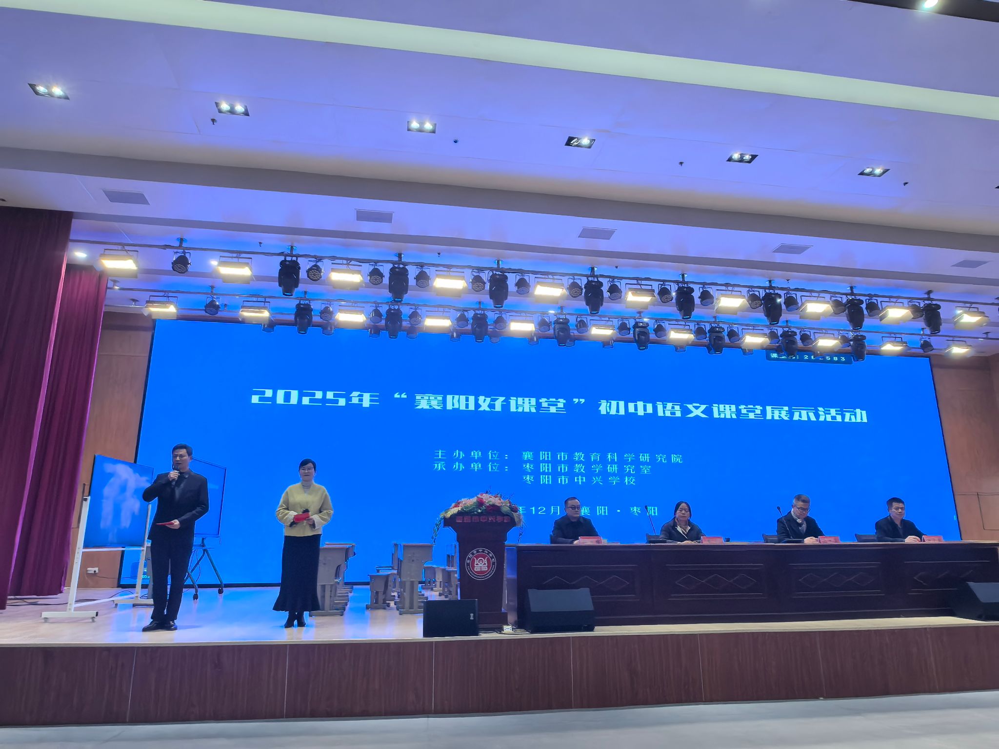 为充分展示全市初中语文课改成果,提升初中语文教师阅读教学水平,12 月 3 日至 5 日,以 “坚守文本解读本位,探索数智赋能教学”为主题的“襄阳好课堂” 初中语文展评活动,在枣阳市中兴学校正式拉开帷幕。襄阳市各县(市、区)初中语文教研员及各初中骨干语文教师300余名齐聚一堂,共探语文教学的创新路径。