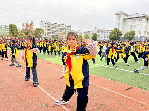 为传承中华优秀传统文化,丰富校园体育文化生活,增强师生身体素质,12月3日大课间时段,房县东城小学的校园里响起悠扬的太极乐曲,全体师生齐聚操场,共同习练武当九式太极拳,成为冬日校园里一道独具韵味的风景线。
