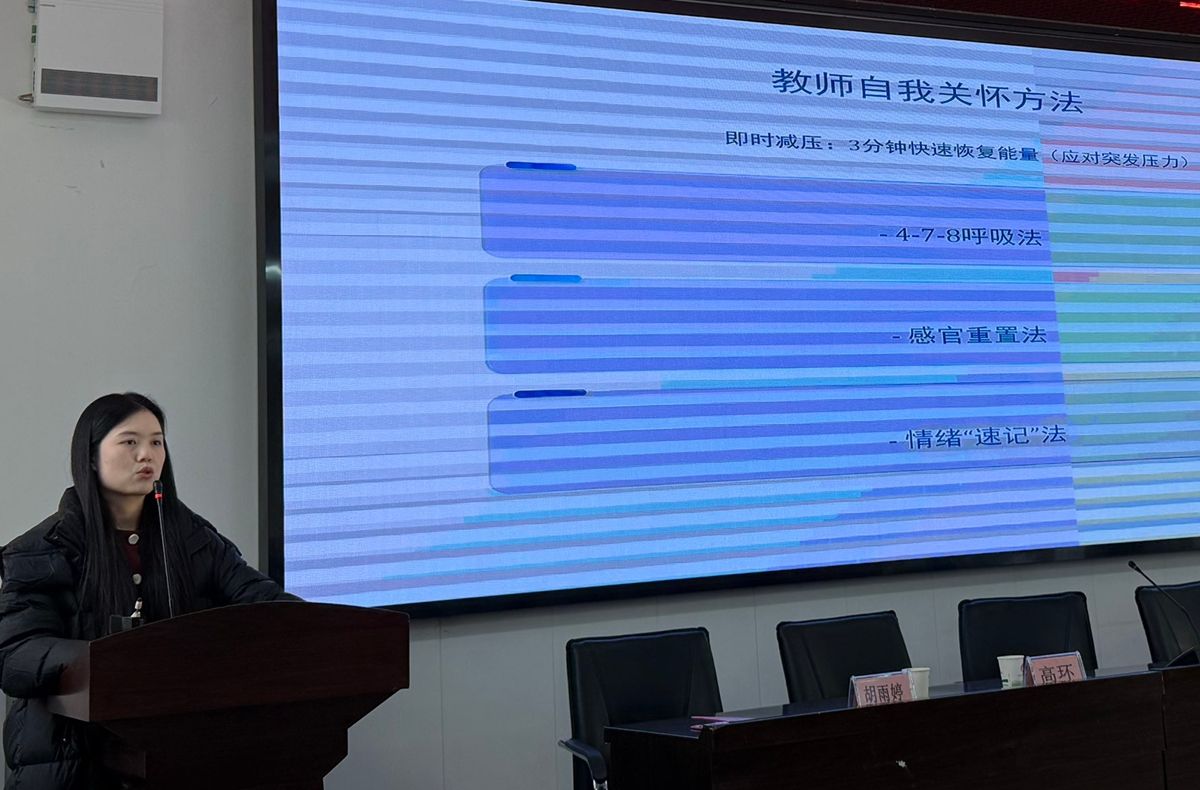 培训讲座在六里坪镇中学举行,全镇中小学校长、心理健康教育专(兼)职教师、班主任等60余人参会学习。六里坪镇中心学校校长李明月指出,当前中小学校心理健康教育工作面临教师缺乏系统专业培训、专职心理教师缺失、心理咨询室标准化建设待完善等挑战。此次太和医院伸出援手、量身定制课程,既是“医校共育”的有益探索,更是健全部门协同防护机制的良好开端,期待以此为起点建立长期合作,让专业服务辐射全镇各校。 十堰市太和医院心理咨询科主任杜慧君在发言中表示,太和医院始终关注青少年心理健康事业,此次与六里坪镇对接筹办培训,是响应国家及十堰市关于心理健康工作的部署要求。医院专业团队,通过专题讲座、个案督导、关注教师心理健康等多元化服务,与学校共同探索心理健康教育新模式,真正将“医教协同”落到实处,为全镇青少年健康成长筑牢心理防线。