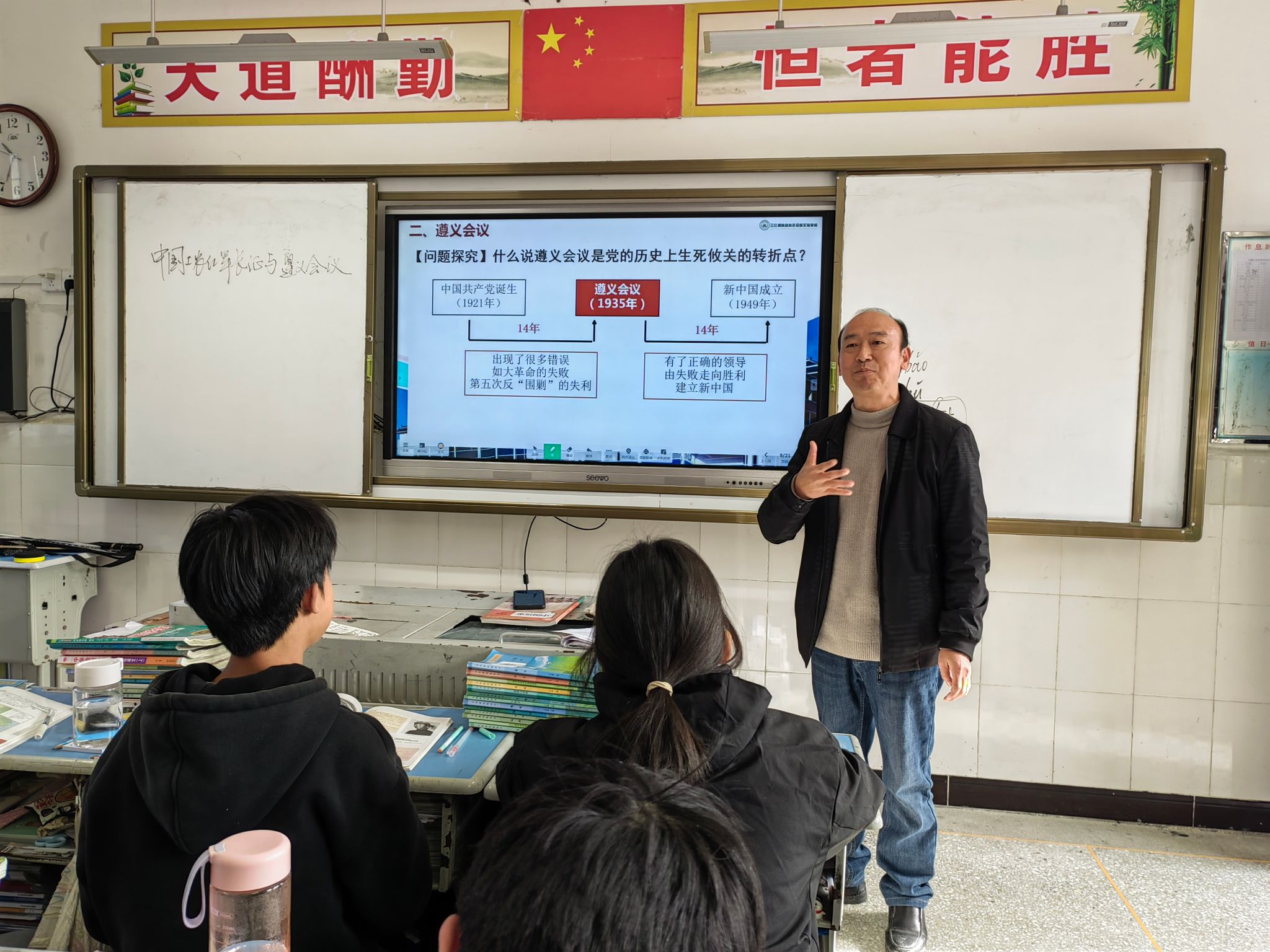 历史学科的3节参赛课同样精彩纷呈。大柳乡初级中学王军老师的《中国工农红军长征与遵义会议》以红色故事串联历史脉络,让学生在重温革命岁月中感悟初心使命;柳陂中学李虎老师带来的《第二次世界大战》,通过史料分析、时空轴梳理等方式,帮助学生构建完整的历史认知体系;献珍学校肖明军老师的《丝绸之路的开通与经营西域》以文化交流为主线,带领学生领略古代中外文明互鉴的辉煌成就,课堂上古今交融、情理共生,彰显了历史学科的育人价值。