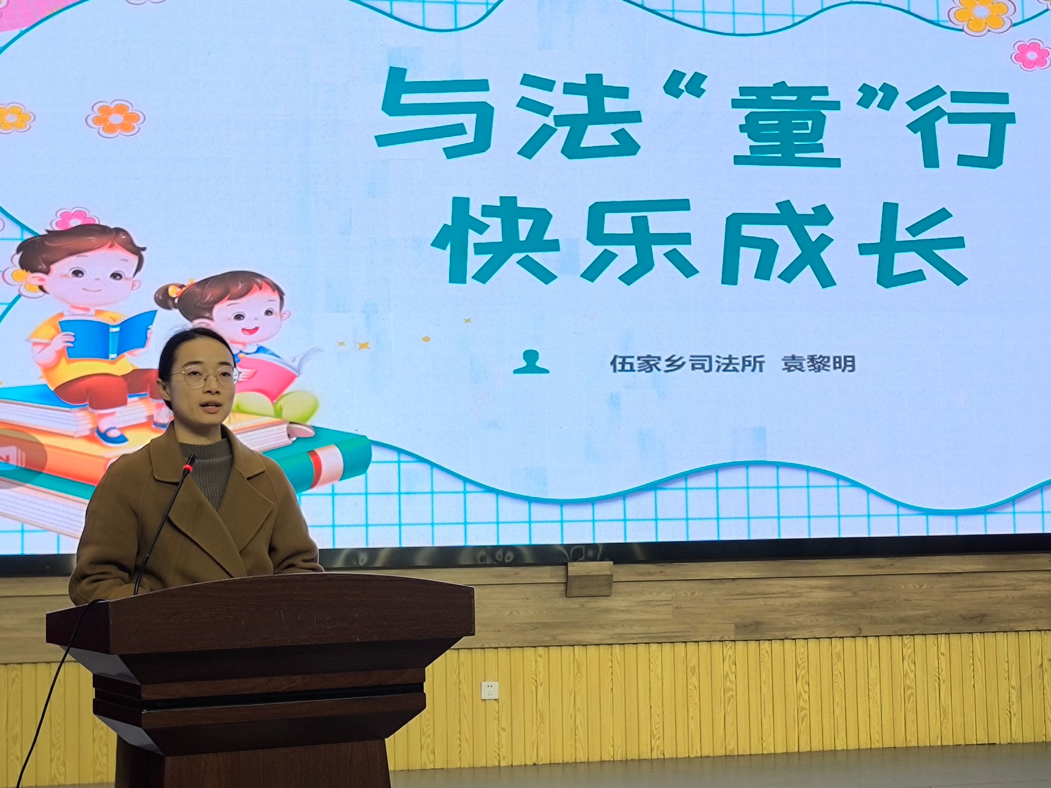 学校还特别邀请到宜昌市伍家岗区伍家乡司法所袁所长为同学们带来精彩的法治专题讲座。讲座中,袁所长结合自身工作经历,用生动鲜活的案例、通俗易懂的语言,向同学们普及了与未成年人相关的法律知识。在互动环节,同学们积极举手提问,围绕“遇到校园欺凌怎么办”“如何保护个人合法权益”等问题与袁所长展开交流。