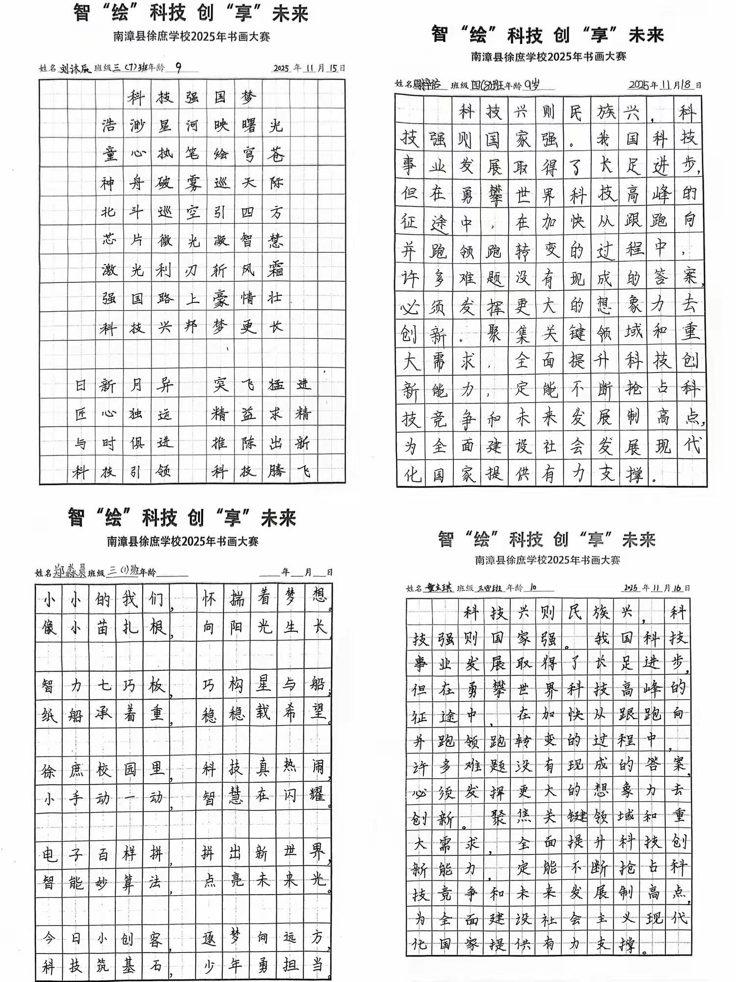 本次书画展得到了同学们的积极响应,共征集到绘画作品275件,硬笔书法作品290件。作品主题鲜明、形式多样,创作者以独特的视角和精湛的技艺,将科技元素与艺术灵感巧妙结合,每一件作品都凝聚着同学们的巧思与匠心。绘画作品中,科幻场景栩栩如生,未来城市、智能生活等元素跃然纸上,尽显少年天马行空的想象力;硬笔书法作品里,楷书工整端庄、行书飘逸流畅,一笔一划间彰显着扎实的书写功底与勤学态度。