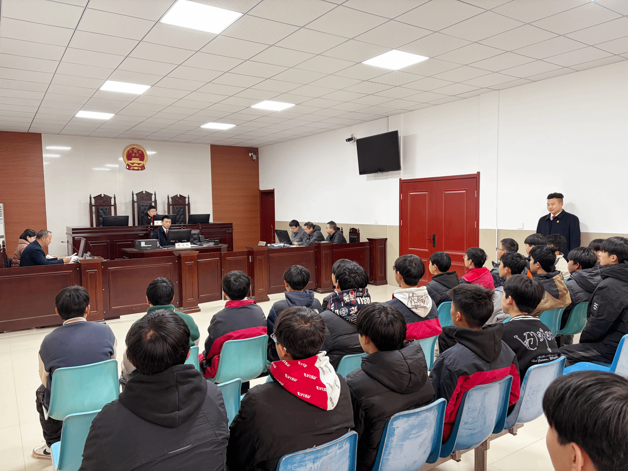在“12·4”国家宪法日到来之际,12月4日,丹江口市浪河中学组织学生代表走进浪河人民法庭,开展沉浸式法治教育活动,让青少年在真实司法场景中种下知法、守法的种子。