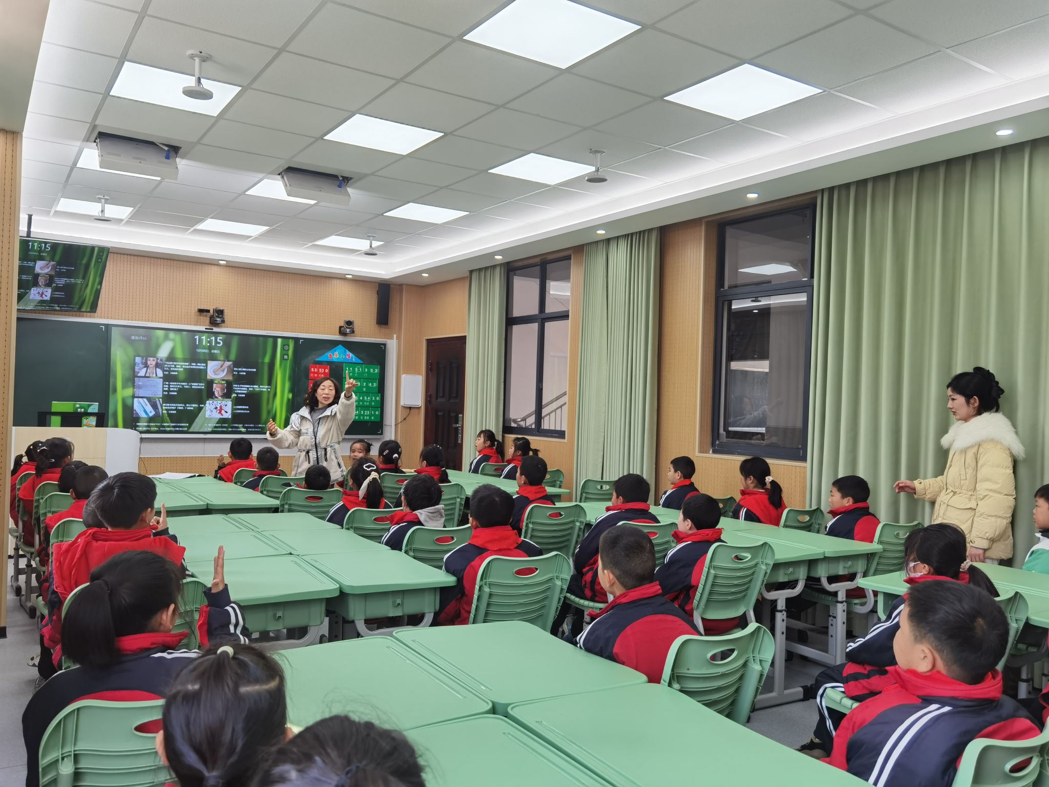 视导组深入课堂,分别听取了语文、数学、音乐、科学四节展示课。陈丹丹老师执教《盘古开天地》,引导学生感受神话魅力;朱菊红老师以《合理安排时间》为例,提升学生数学思维与应用能力;周颖老师带领学生走进《音乐小屋》,课堂生动活泼;王道华老师通过《声音的产生》激发科学探究兴趣。四位教师立足学科素养,课堂扎实有序,展现了学校“雅正育人”的教学风貌。