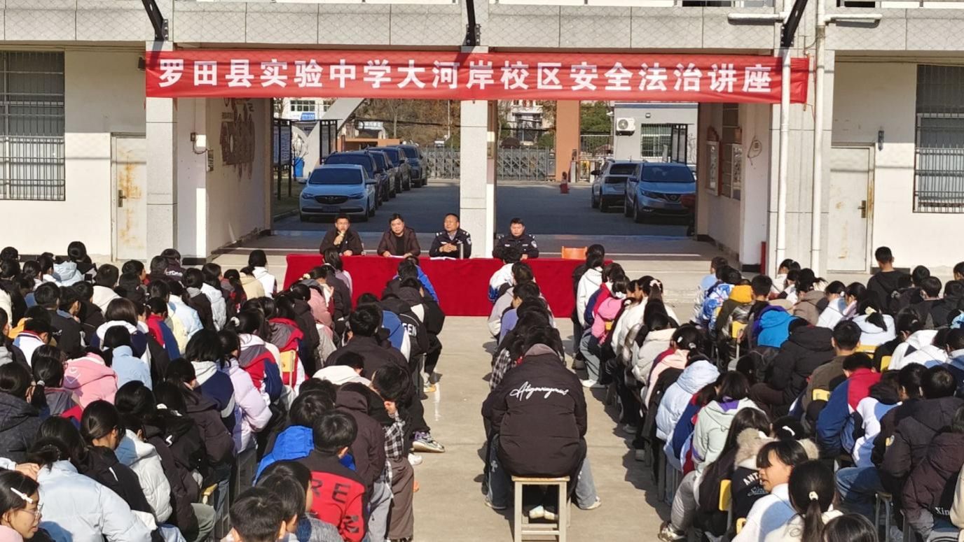为进一步筑牢校园安全防线,增强师生法治观念与安全意识,2025年12月5日,罗田县实验中学大河岸校区组织全体师生开展安全法治讲座。该校区法治副校长、大河岸派出所所长童品高以及叶警官为全体师生带来了一堂生动且深刻的法治教育课。