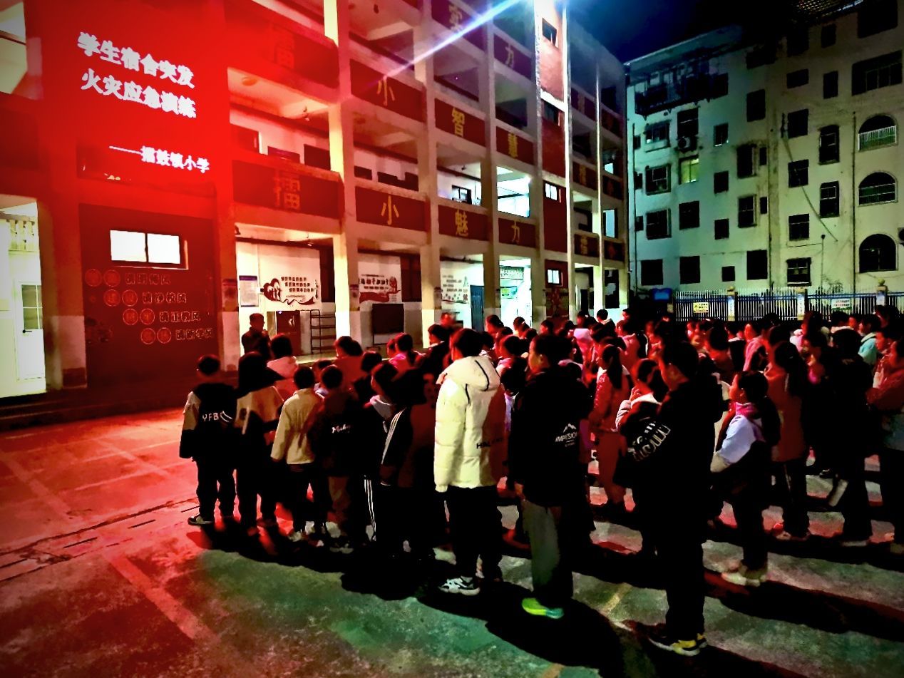 为提升住宿生应急避险能力,筑牢校园安全防线,12月8日晚,竹山县擂鼓镇小学组织三至六年级住宿生开展夜间安全疏散演练。各处置工作人员全程参与,演练覆盖消防安全、地震应急等场景。