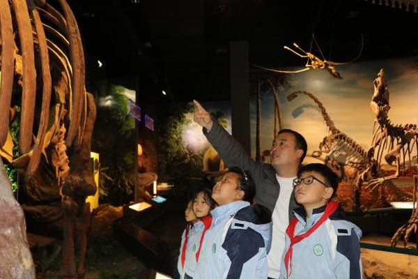 在十堰博物馆恐龙馆,孩子们瞬间被巨大的恐龙骨架化石吸引。面对侏罗纪的庞然巨物,他们仰起小脸,发出阵阵惊叹。“这条马门溪龙的脖子为什么这么长?”“恐龙是怎么灭绝的?”好奇的提问此起彼伏。对恐龙颇有研究的副校长许杰饶有兴趣的以生动的故事,将化石背后的远古世界给孩子们娓娓道来。孩子们轻抚仿制化石的纹路,在研学手册上认真勾勒恐龙轮廓,眼中闪烁着科学探索的光芒。这一刻,亿万年的生命演化史,悄然在这些小小的心灵中埋下了求知的种子。