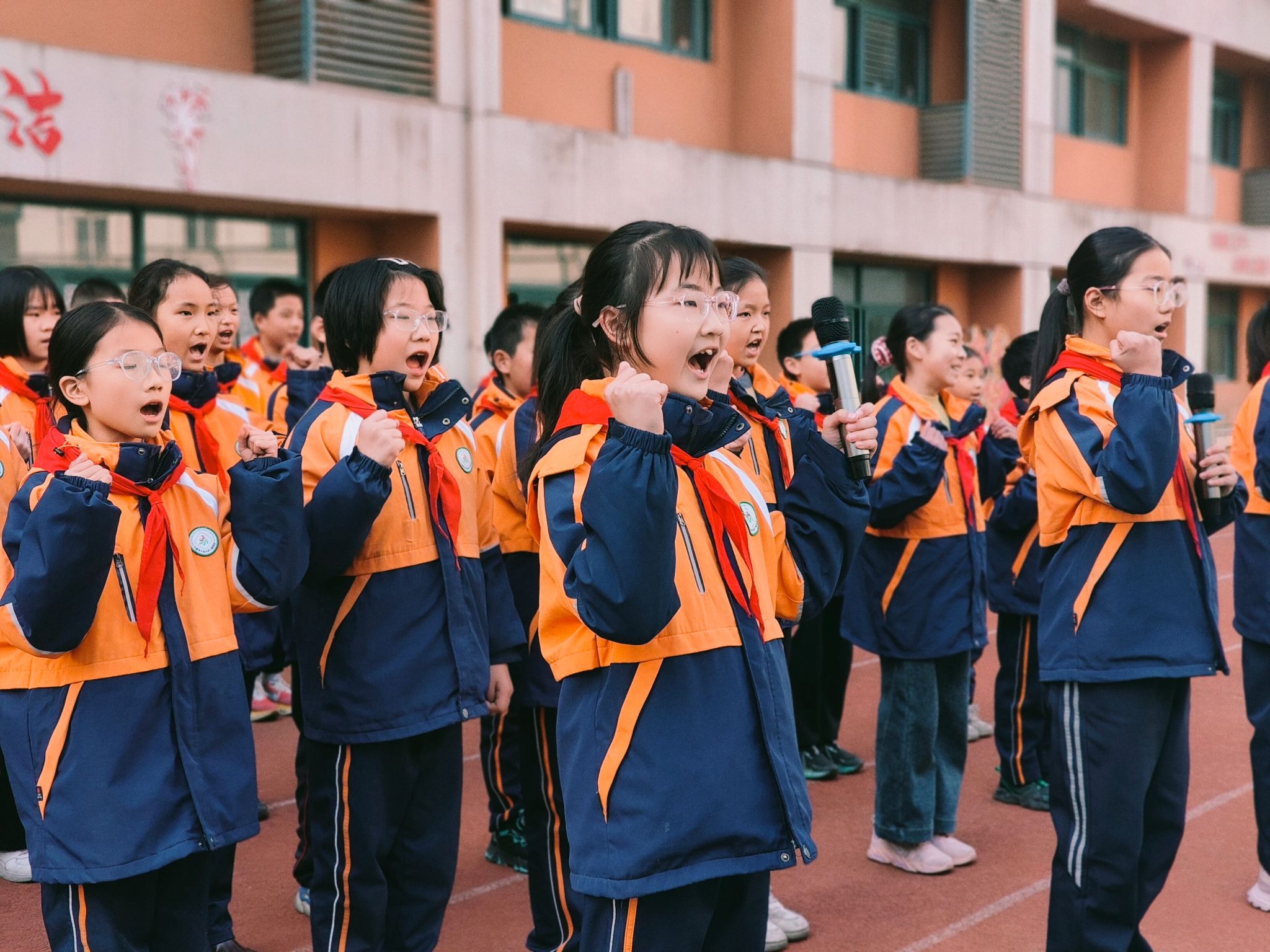 历史是最好的教科书。当雄壮的《义勇军进行曲》响彻在学校上空时,全体师生凝视着鲜艳的五星红旗冉冉升起,向着国旗行注目礼、齐唱国歌,嘹亮的歌声响彻云霄!
