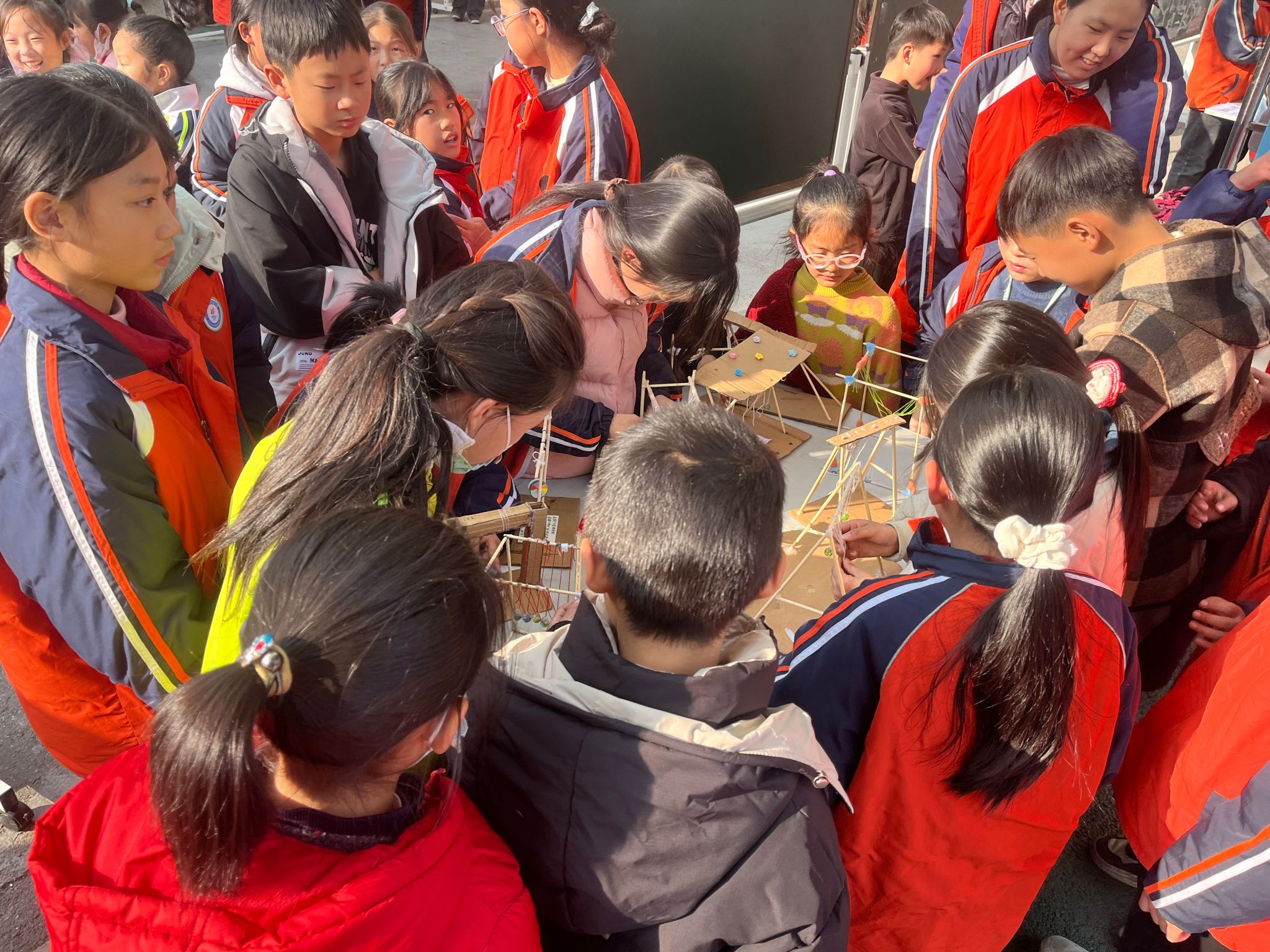 科学小制作展区更是创意爆棚:等离子炮启动时发出低沉的“嗡”声,空气炮喷出的“白色风环”让围观同学惊呼连连;精致的航天模型在灯光映照下,宛如整装待发的宇宙飞船;而学生自制的张拉结构模型,在轻轻摇晃中依旧稳稳支撑,展现了力学与美学的完美结合。