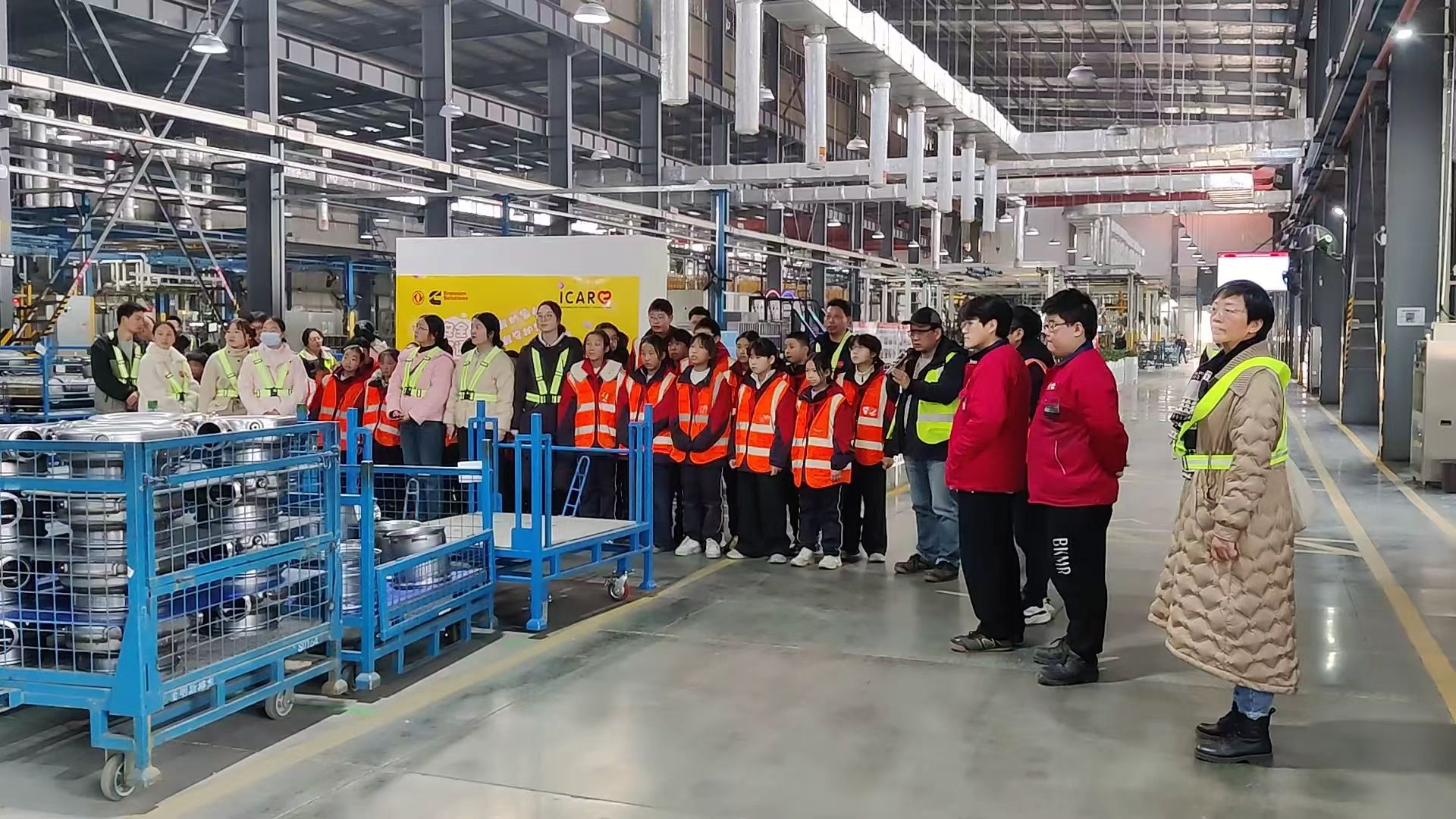 活动中,在工作人员的带领下,同学们分组参观了智能化生产线,亲眼目睹了排放处理系统的制造与测试过程。讲解员用“汽车的小绿肺”等生动比喻,向同学们阐释了柴油发动机后处理技术如何有效减少污染、保护环境。同学们边听边问,表现出了浓厚的科学兴趣和环保意识。