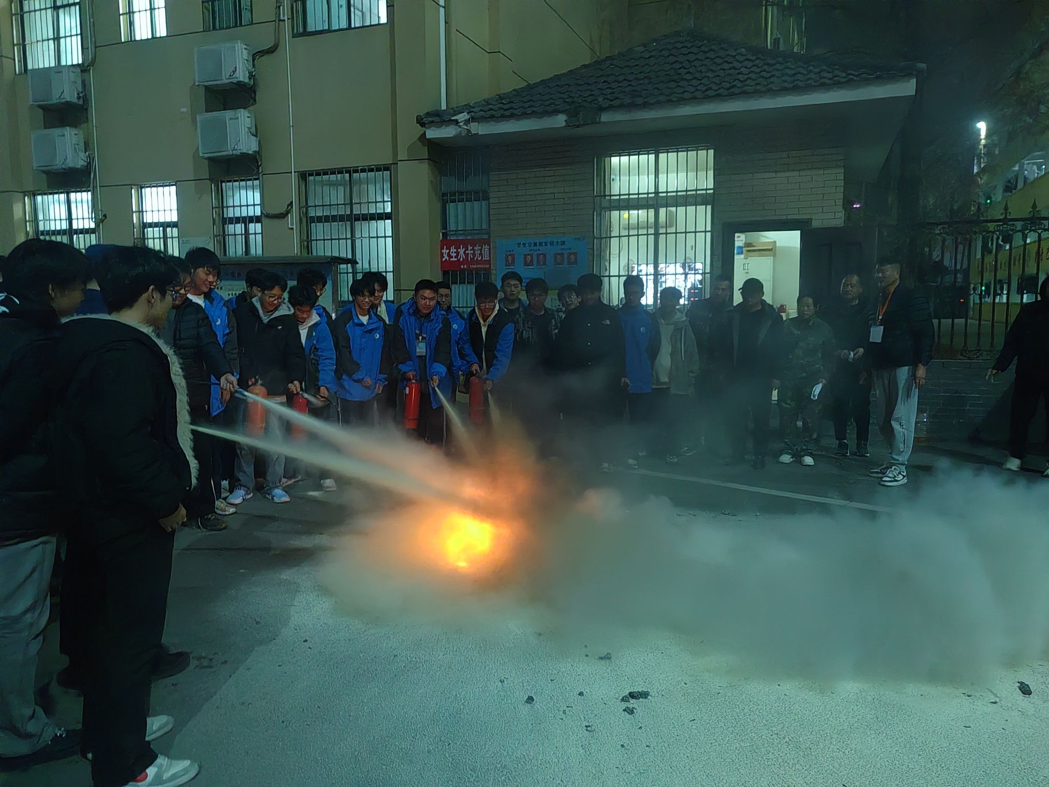 在消防指战员的专业指导和安全监护下,部分师生代表轮流上前,亲手操作灭火器扑灭模拟火源。初次接触灭火器的师生,从略显生疏到成功控制火苗,亲身体验了应急处置过程,切实掌握了扑救初起火灾的基本能力。