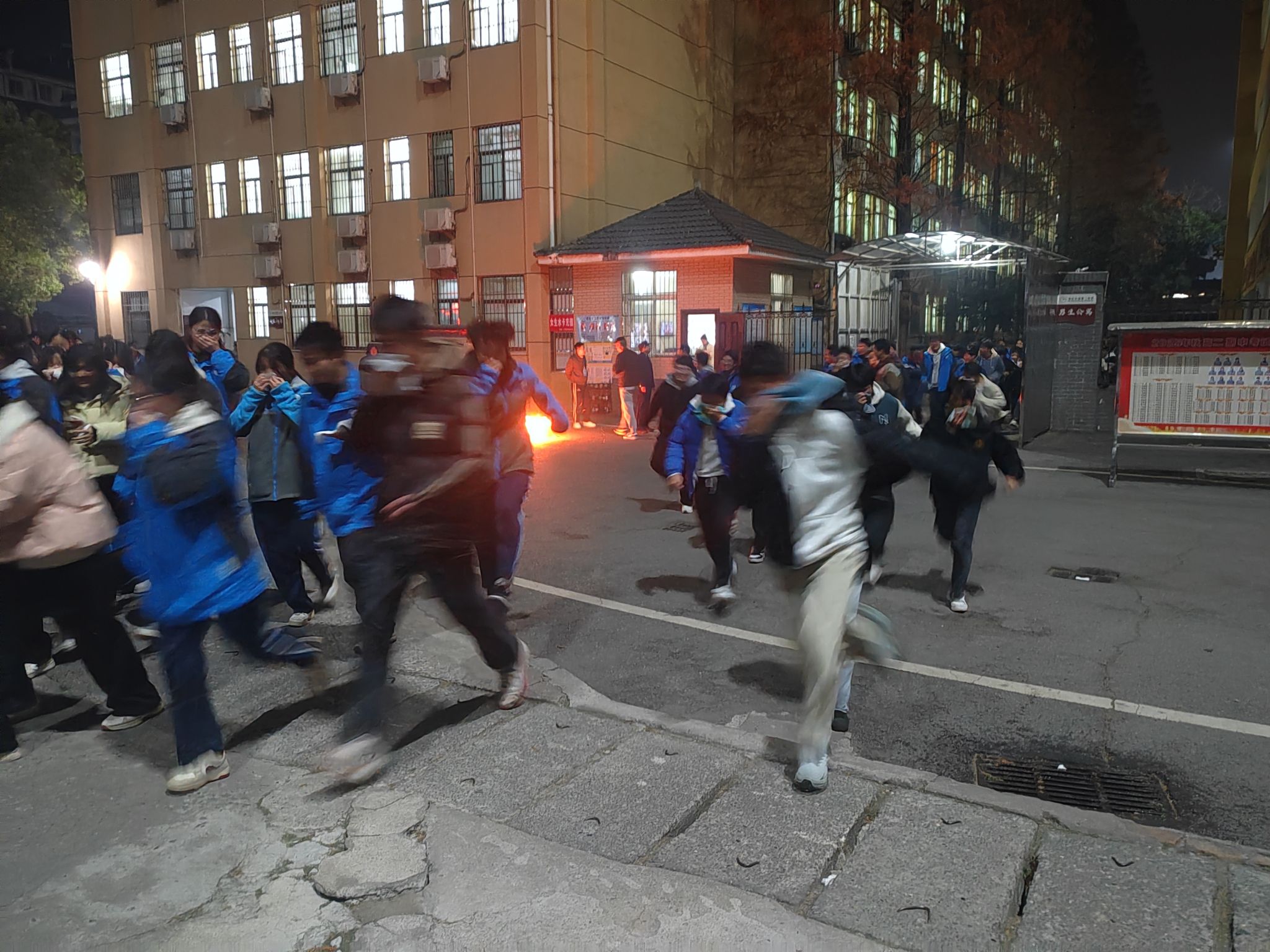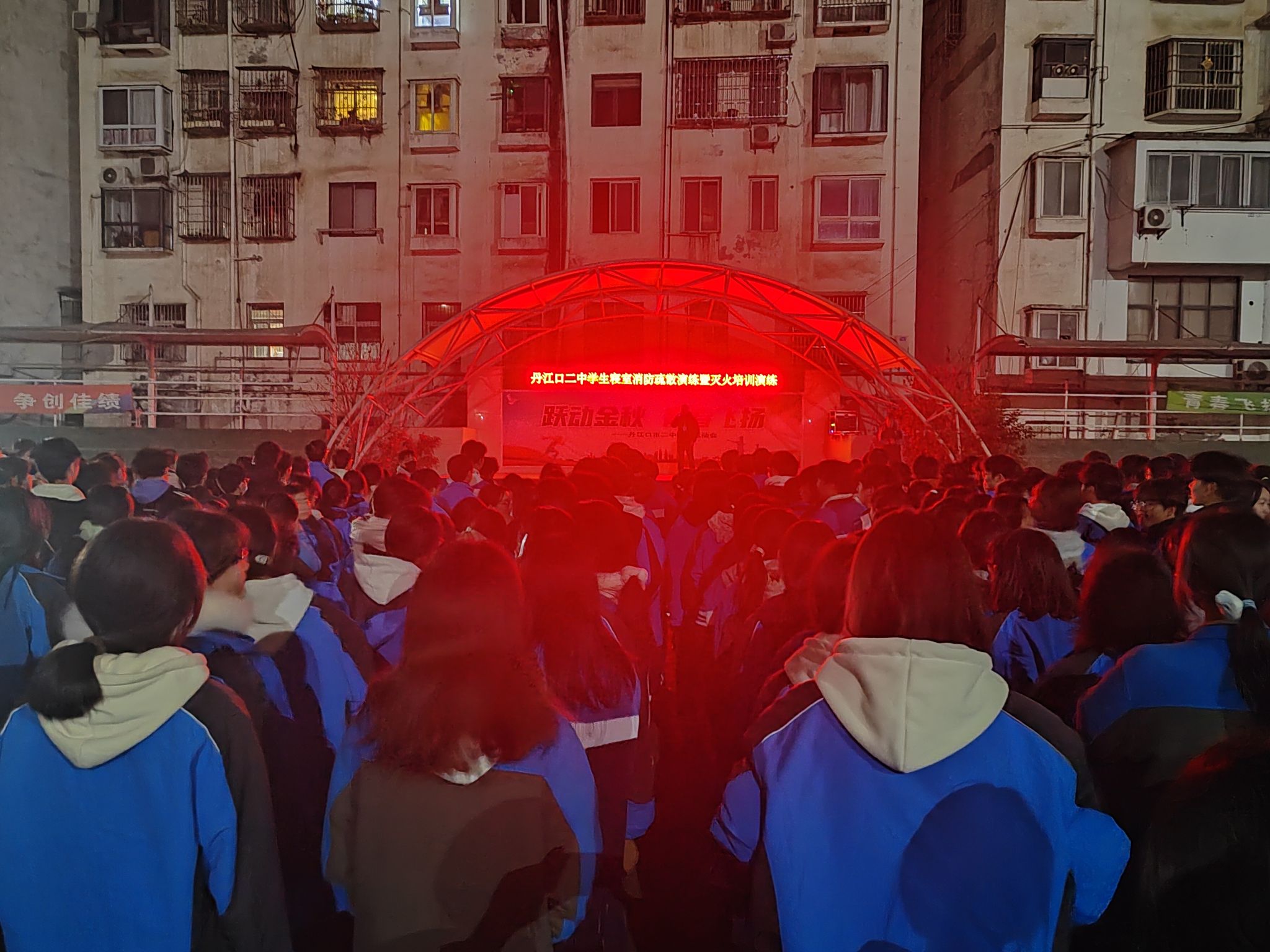 12月11日晚8时,一阵急促的消防警报声在丹江口二中校园响起。刹那间,学生寝室灯火通明中映照出迅速有序的身影。学生们用湿毛巾紧捂口鼻,压低身体,沿着熟悉的逃生通道快速向室外撤离。整个过程紧张而不慌乱,短短数分钟内,所有学生均安全疏散至指定的学校运动场集合。丹江口二中正精心组织一场学生寝室夜间消防应急疏散演练。