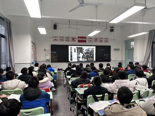队课以鲜活的历史影像、感人的英雄事迹为载体,带领队员们重温了中华民族在危难之际的奋起抗争,感受了革命先辈为守护山河、捍卫家国所付出的热血与牺牲。从硝烟弥漫的战场故事,到如今繁荣昌盛的祖国图景,队员们深刻体会到今日幸福生活的来之不易。观看过程中,队员们神情专注,时而认真记录,时而眼含热泪,被革命先辈们的爱国精神深深打动。