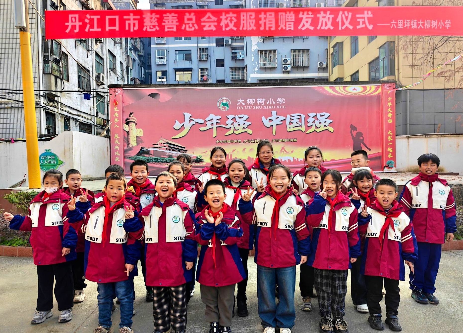12月11日,丹江口市慈善总会爱心校服捐赠仪式在六里坪镇大柳树小学举行,全校300余名学生一人一件崭新冬季校服穿在身上,暖人暖身更暖心。