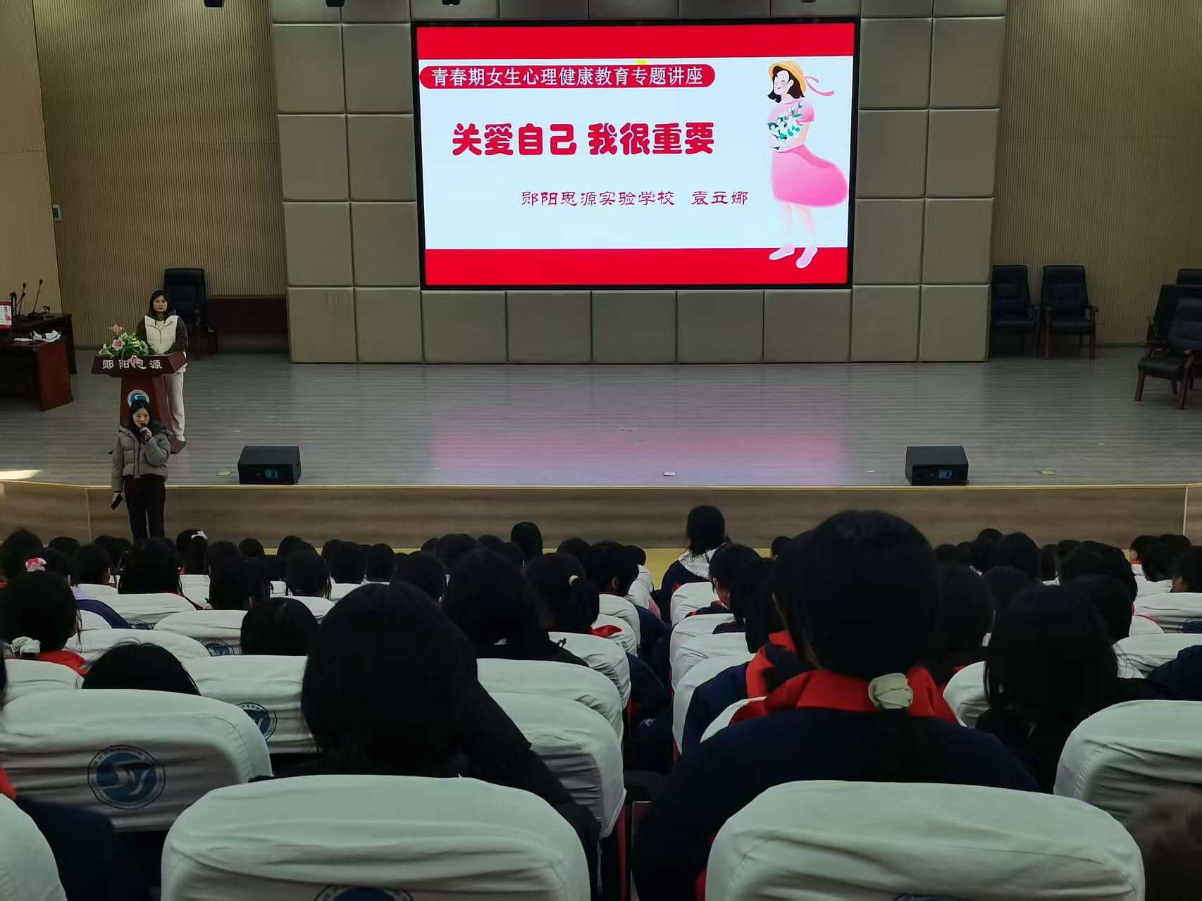 为帮助女生正确认识青春期身心变化,树立健康自我认知与安全防护意识,护航女生健康成长。12月15日,郧阳思源实验学校在报告厅举行初中部女生心理健康教育知识讲座。