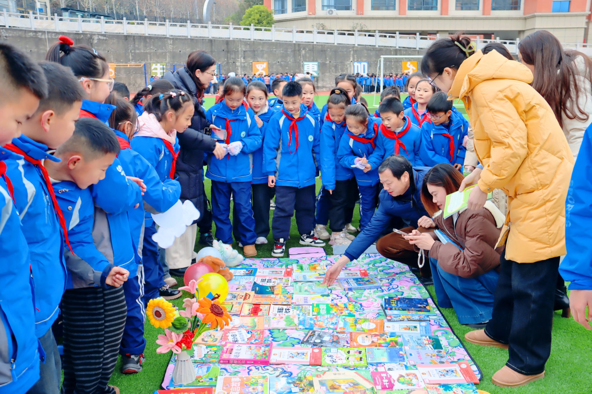 “看,这是用我的画换来的《昆虫记》!”“买书换书,就来三味书屋!”12月16日上午,竹山县恒升小学的操场化身为一片欢乐的“图书集市”。学生们带着闲置的图书、玩偶,或用平时积攒的零用钱,通过“金钱购买”“物物交换”等方式,开启了图书漂流之旅。