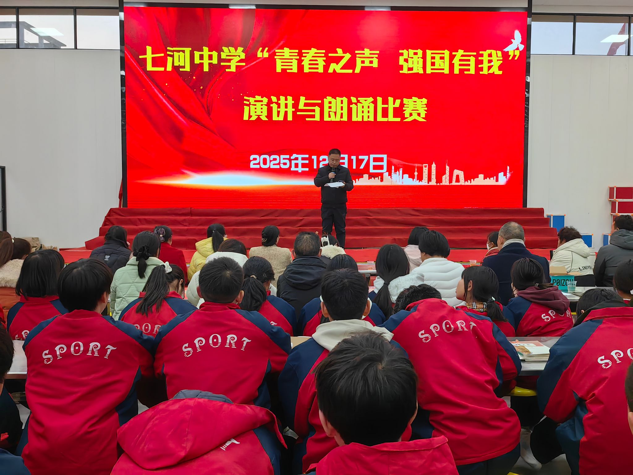 为厚植家国情怀,砥砺青春志向,2025年12月17日,房县红塔镇七河中学“青春之声 强国有我”主题演讲与朗诵比赛决赛圆满落幕。经过前期选拔,来自八年级各班的21组选手同台竞技,用真挚的情感和铿锵的语言,奉献了一场精彩纷呈的思想与艺术盛宴,生动诠释了新时代青少年的责任与担当。