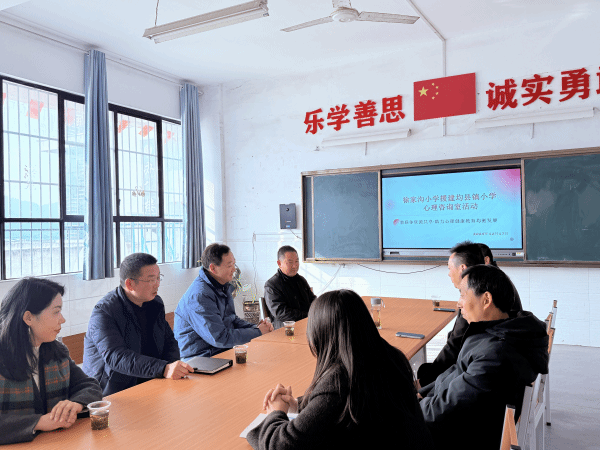 活动当天,由徐家沟小学党总支书记金晓、副书记纪德奎、副校长侯勇、陈明平、陈秀等五位组成的团队早早出发,抵达均县镇小学后,立即与该校领导、教师代表及后勤人员展开座谈。均县镇小学领导详细介绍了学校心理健康教育的现状与需求,徐家沟小学领导则阐明了援建的初衷与具体活动安排,双方明确了共同的目标。