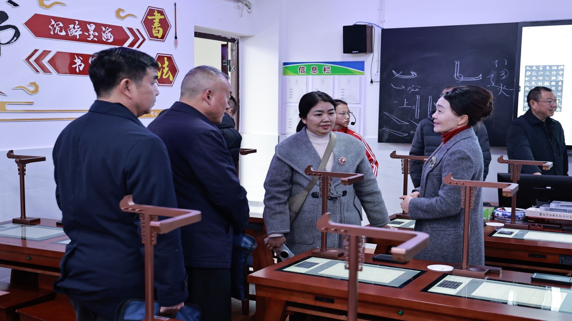 考察组一行先后参观了校园环境、学生食堂、书法教室、美术教室、创客教室、文化建设长廊等以及欣赏了学生大课间。参观过程中,该校优美的校园环境、浓厚的文化氛围、先进的教学理念及孩子们朝气蓬勃的精神面貌,给考察组留下了深刻印象。考察组成员不时驻足,详细了解相关情况,并用手机记录下精彩瞬间。