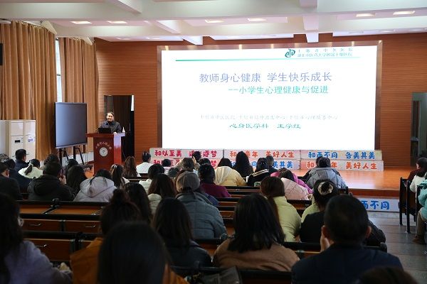 十堰市中医医院心身医学科主任医师王学红受邀来校,主讲题为《教师身心健康 学生快乐成长——小学生心理健康与促进》的讲座,讲座围绕“儿童青少年心理发展特点”“如何促进青少年心理健康与快乐成长”等四个方面展开。