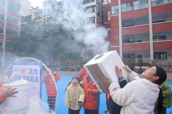 “投篮机器人”精准穿梭投掷、“烟雾版空气炮”喷出一道道圈......体验区同样是热门区域,惊叹声此起彼伏。同学们眼中满是好奇,接连提问,还亲手操作仪器,感受科技的魅力。