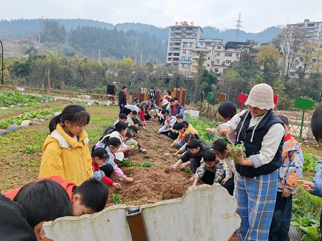为扎实推进劳动教育,让学生在耕耘中体悟劳动价值,12月19日,宣恩县第二民族实验小学405班的同学们,在夏老师和周老师的带领下,再次走进学校“共享菜园”,开展包菜种植实践活动。