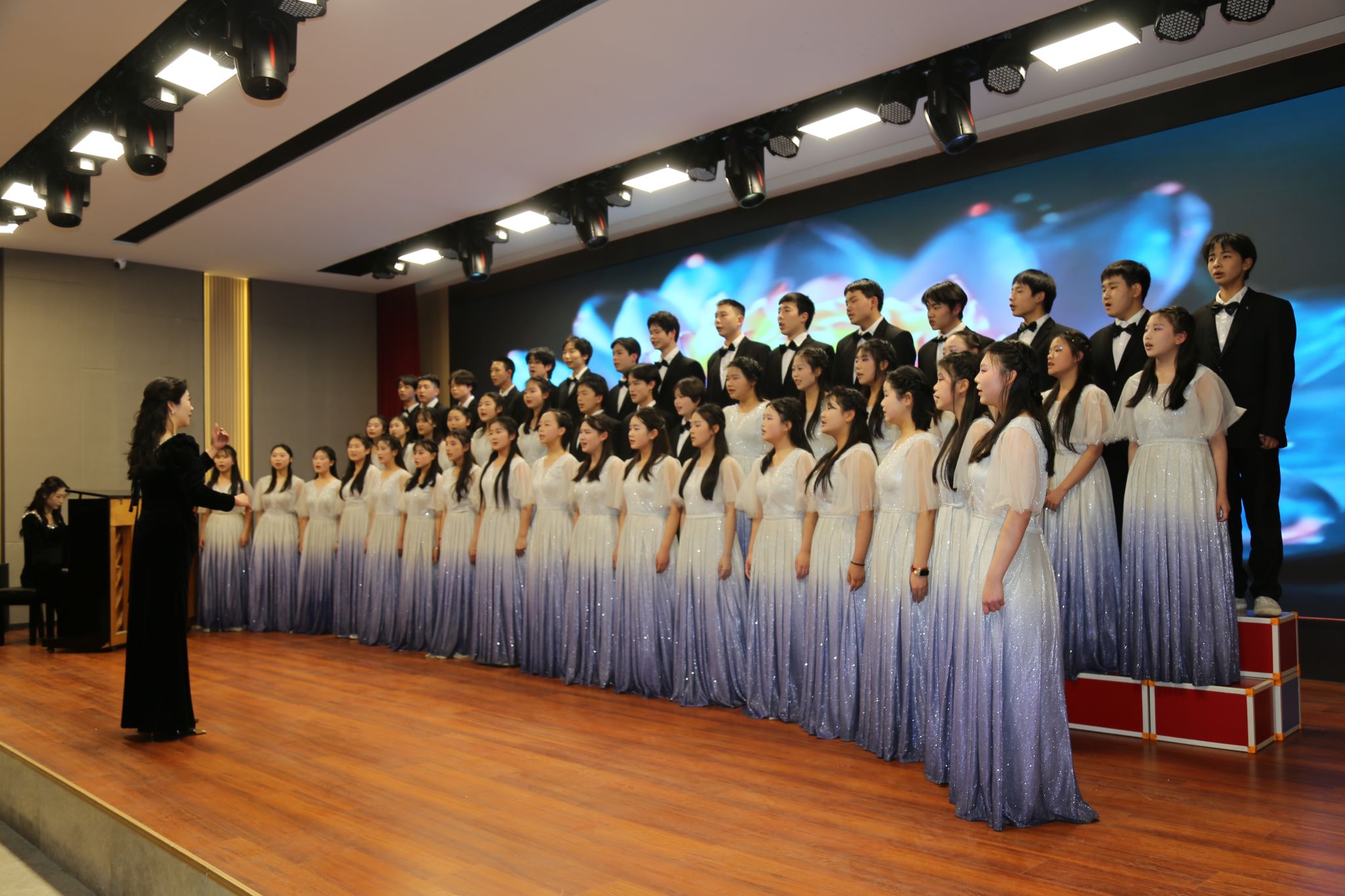 省自身环节,主持人引导全体人员闭目静思,围绕教育初心、践行教育家精神、助力教育强国建设开展深刻内省与叩问,在沉静思索中明晰使命与方向。唱歌曲中,学生倾情演绎大合唱《世界赠与我的》,传递出对生命馈赠的感恩与接纳、对时空存在的深刻体悟及对情感真谛的追寻与珍视。