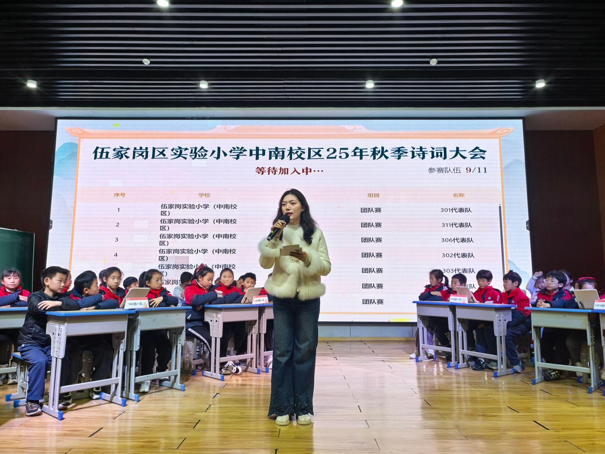 12月24日下午,伍家岗区实验小学中南校区报告厅内诗韵悠扬、掌声阵阵,“经典诵读暨第二届诗词大会”三年级专场首场活动在此圆满举行。此次活动作为学校“炫彩文化月”系列重要活动之一,以“全员参与、分层竞技”的形式,充分展现了中华经典文化的魅力与校园文化的活力。