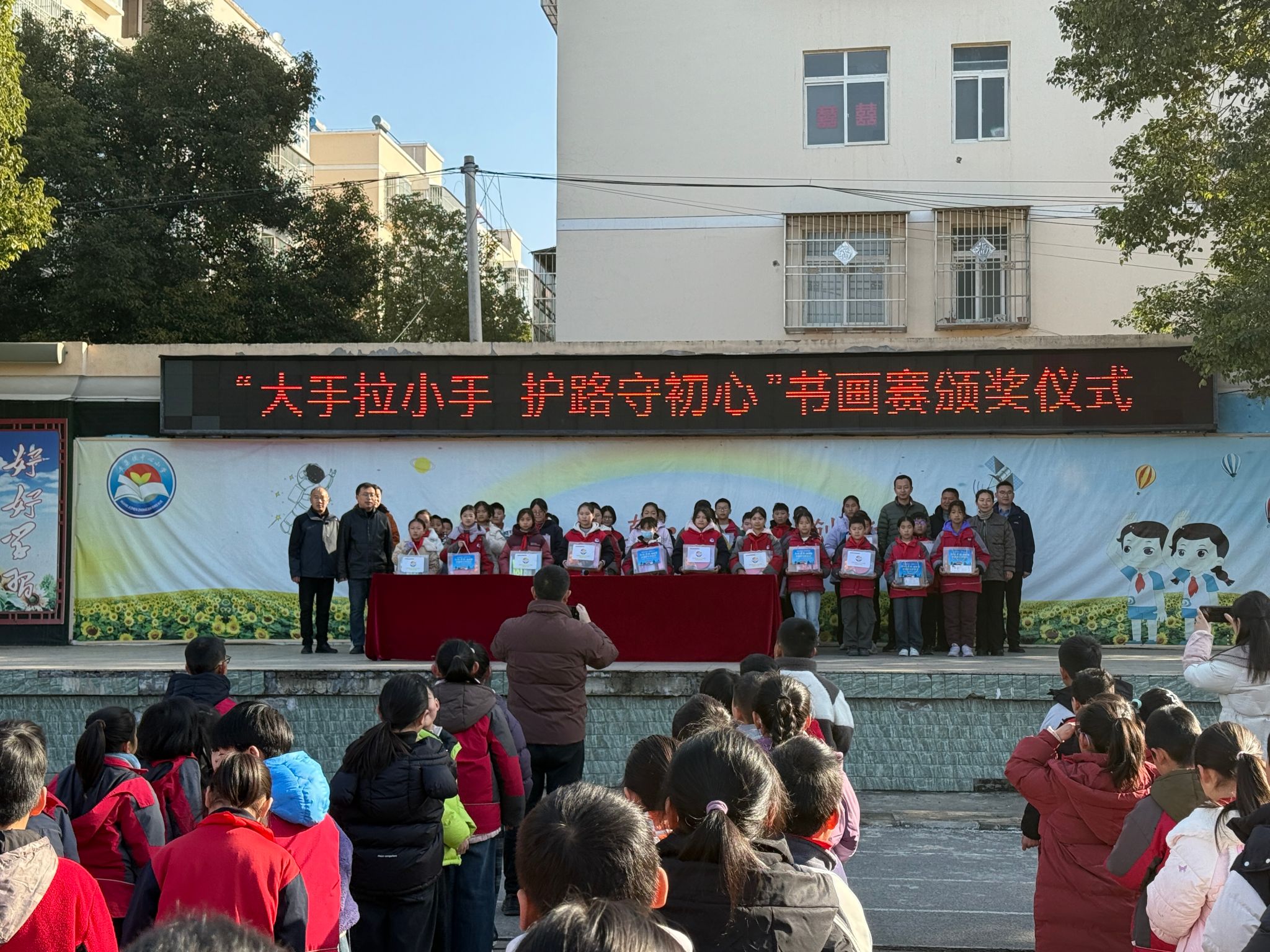 为深化路外安全宣传教育,践行“向善·求真·博学·创新”的校训精神,增强中小学生“知路、爱路、护路”的自觉意识,营造“教育一个孩子,带动一个家庭,影响整个社会”的良好路外安全氛围,12月25日,黄集镇中心小学在操场举行“大手拉小手 护路守初心”书画赛颁奖仪式,全体师生共同见证这一荣誉时刻。