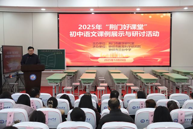 12月26日,2025年“荆门好课堂”初中语文课例展示与研讨活动在钟祥市兰台中学举行。本次活动以“坚守文本解读本位,探索数智赋能教学”为主题,荆门各县(市、区)初中语文教研员、教研组长、备课组长及骨干教师共160余人汇聚在古老的兰台山,共赴一场贯通古今、融合智慧的语文教学盛宴。