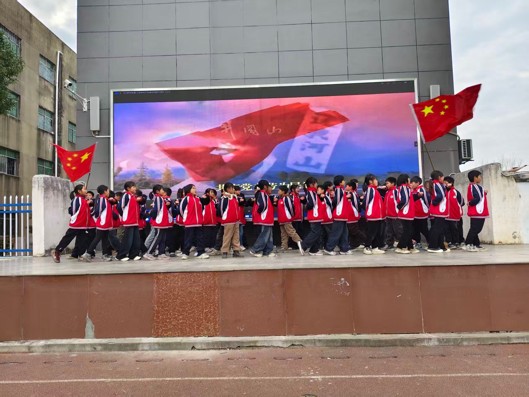 本次汇演自11月启动筹备,各班利用课余时间积极排练,最终推选出3个“最佳风采节目”代表学校参加全镇集中展演。舞台上,二年级(3)班课桌舞《战马》节奏铿锵、气势如虹;四年级(1)班大合唱《没有共产党就没有新中国》童声嘹亮、振奋人心;六年级(4)班舞蹈《中国范》以太阳花与街舞的创意融合,将传统文化与现代元素完美碰撞,赢得评委一致点赞,成功斩获“最佳创意奖”。