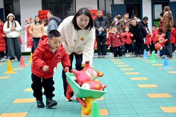 12月30日下午,在轻快愉悦的新年乐曲中,竹山县张振武幼儿园“绘本里的骏马新年,游戏中的元旦童趣”庆元旦主题活动热烈开启。200余名家长与身着红色喜庆服装的师生共同参与,沉浸于阅读与游戏交融的欢乐氛围,以充满童趣的方式迎接2026年的到来。