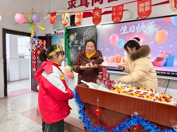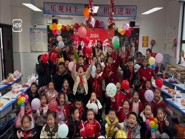 教室里,彩带、气球和孩子们亲手绘制的节日画作营造出浓厚的喜悦氛围。班主任为孩子们揭晓了特别的新年惊喜——一场属于整个班级的生日会。随着《生日快乐》的歌声响起,孩子们脸上绽放出灿烂的笑容,相互致以真诚的祝福。老师逐一念出每个同学的名字,教室里响起阵阵掌声,温暖在每个人心间流淌。