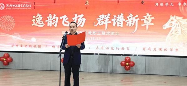 首先,学校党总支副书记、校长张昌鹏发表了热情洋溢的新年祝词。张校长深情回顾2025年,学校紧紧围绕“立德树人”这一根本任务,坚定不移地落实“学习中心课堂”,推进“双减”政策落实,在教育教学、师资队伍、校园文化等方面均取得了显著的成绩。展望2026年,张校长指出学校将继续锚定“高质量发展”这一主题,不断提升教育教学质量和管理水平;持续擦亮“教师发展”这一底色,加强师资队伍建设;积极拥抱“变革创新”这一动力,善用信息技术赋能,不断向“办人民更加满意的教育”这个目标迈进。