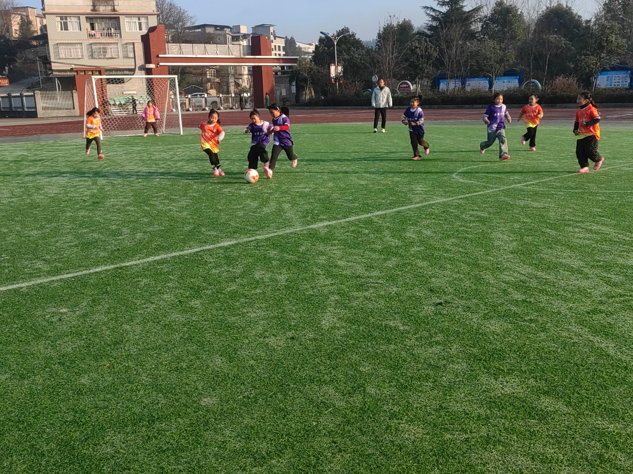 此次联赛,以班级为单位,以小组轮回赛和淘汰赛相结合的方式进行,分男女组开展,23个班64支球队参与比赛,按赛程整装待发,在赛场上开启逐梦之旅。每场比赛中,孩子们用灵动的传球、奋力的奔跑与帅气的射门,书写对足球最纯真的热爱。虽然他们的球技还显稚嫩,配合也不够默契,但他们积极向上、努力拼搏的斗志点燃了场下围观同学们的热情,呐喊声、加油声把球赛推向了热潮。