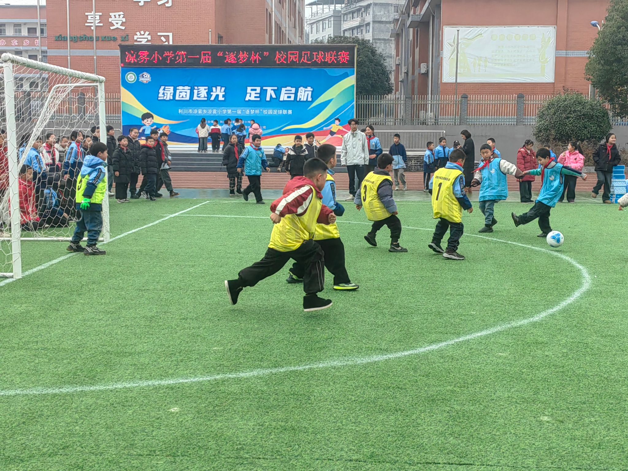 1月5日,利川市凉雾乡凉雾小学举行了“绿茵逐光 足下启航”为主题的首届“逐梦杯”校园足球联赛。比赛在201班和202班男子组角逐中拉开帷幕,小球员们将蓬勃朝气与赛场雄姿尽展,谱写冬日绿茵场上逐梦乐章。